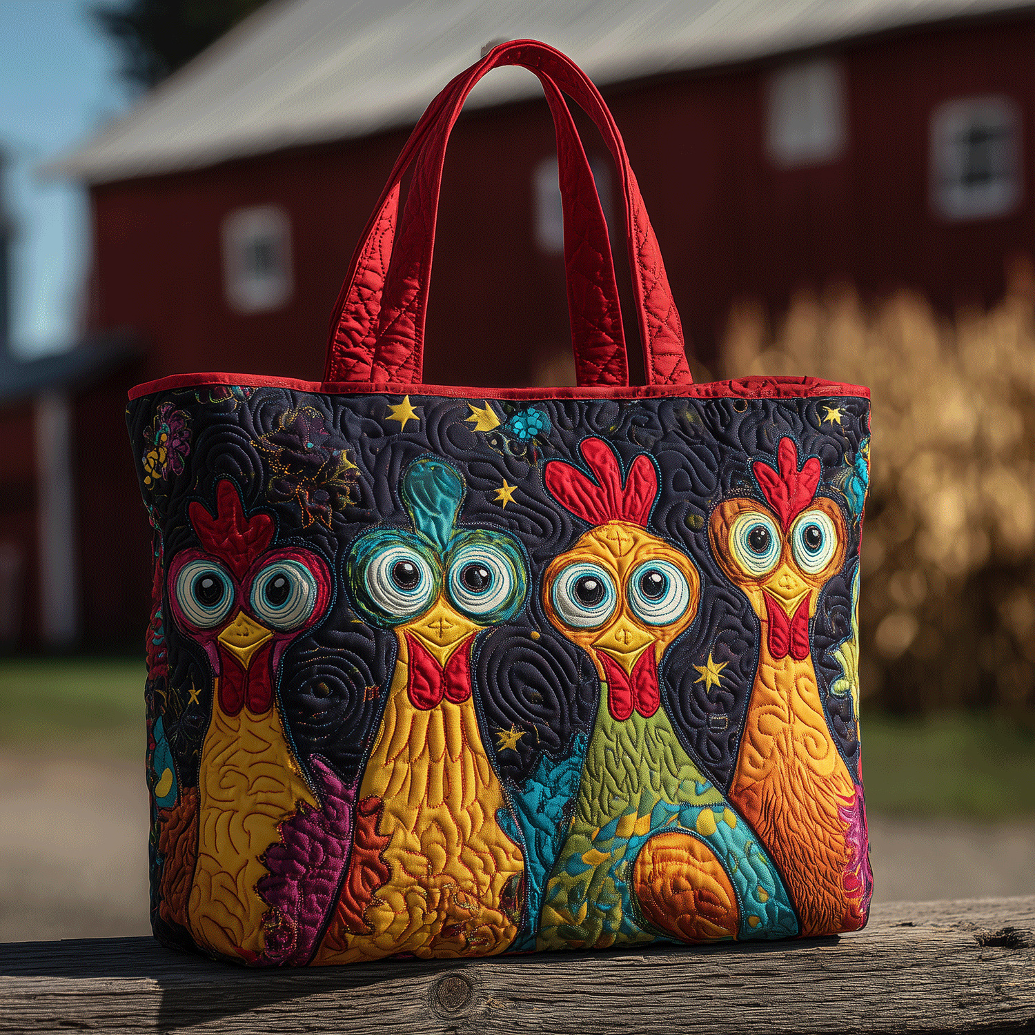 Rooster Rowdy Quilted Tote Bag NCU0TH2837