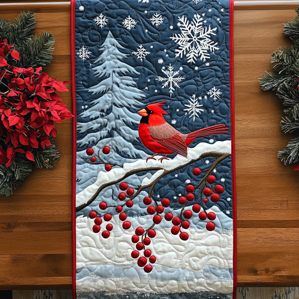 Scarlet Song in the Snow Quilted Table Runner NCU0DK1596