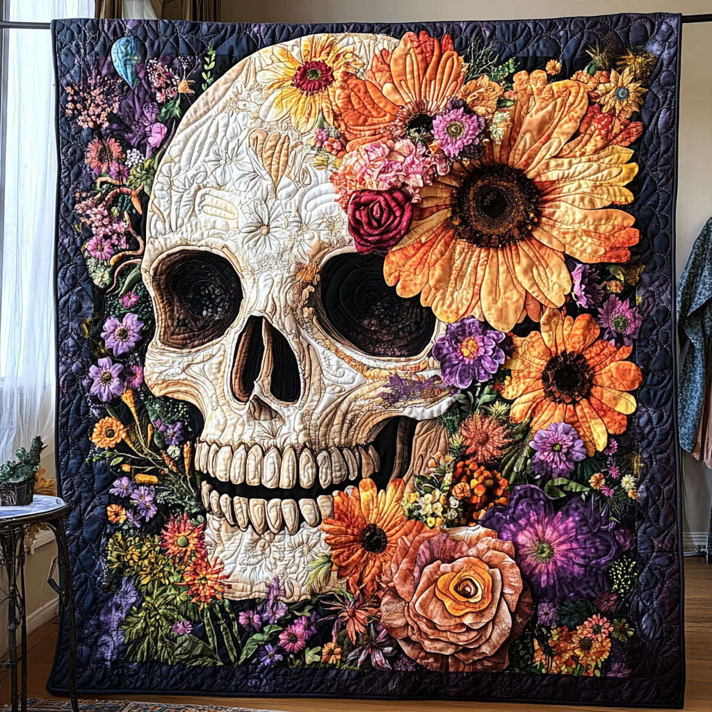 Skeleton Flowers Quilted Blanket NCU0PT1982