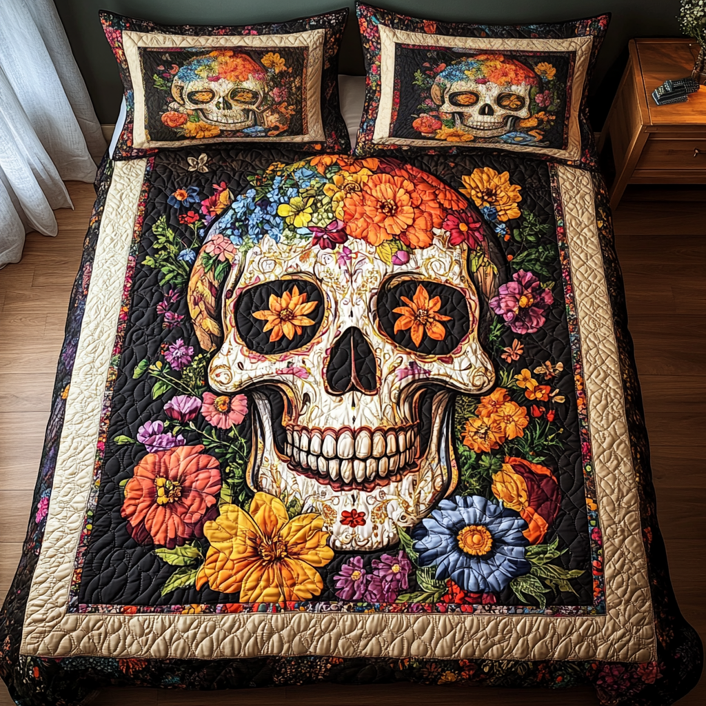 Skull And Blooms 3-Piece Quilted Bedding Set NCU0TL1915
