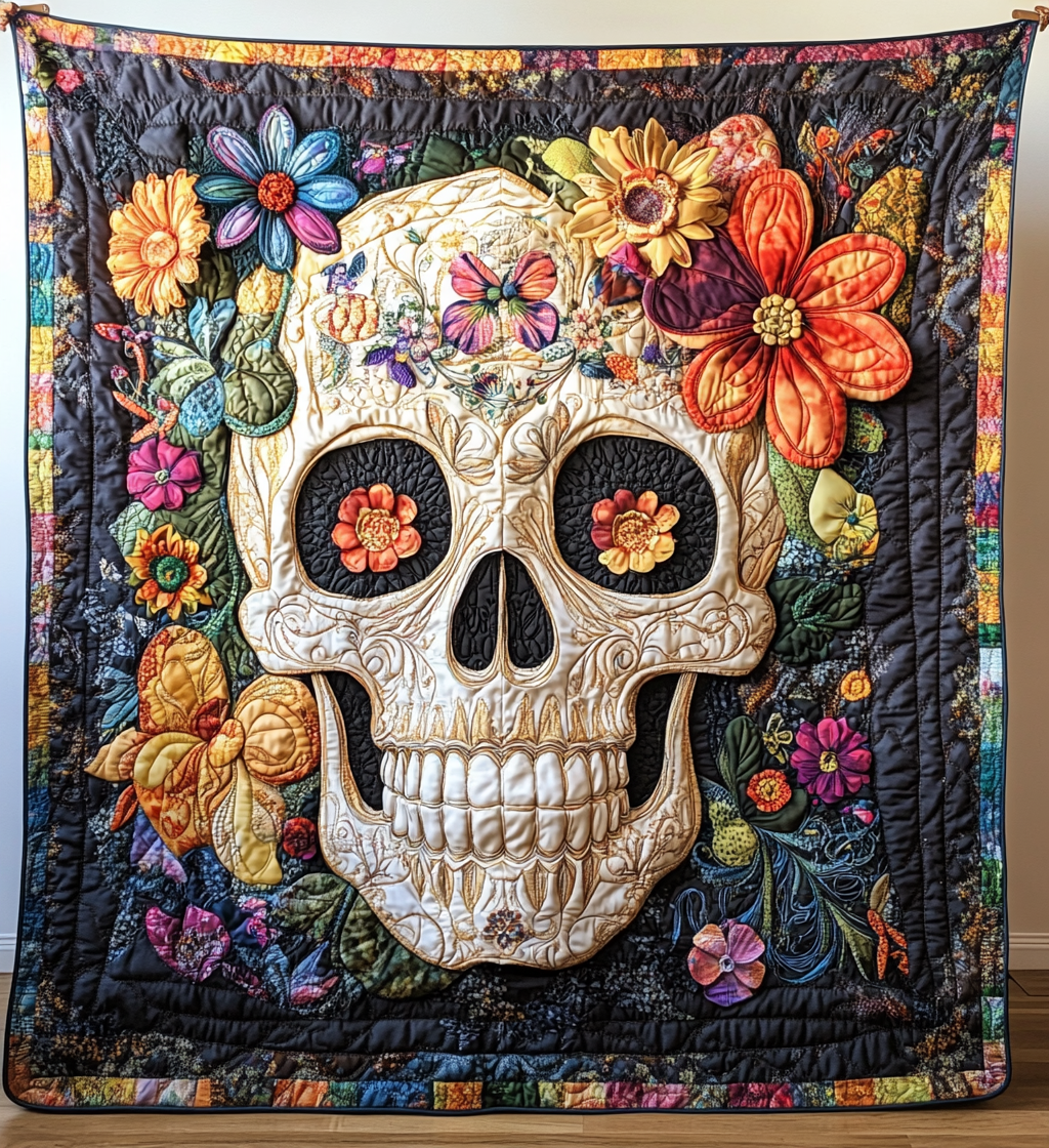 Skull And Blooms Quilted Blanket NCU0TL1879