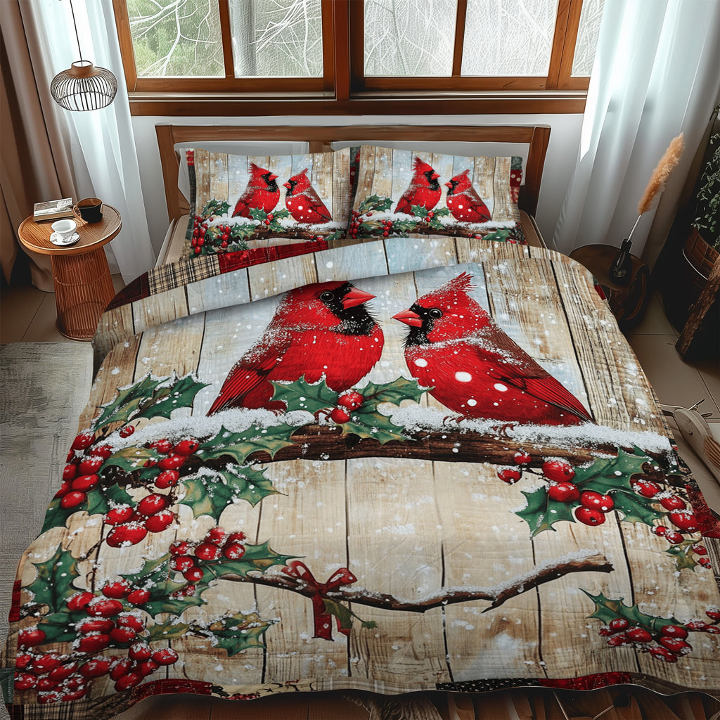 Snowy Cardinal Serenity 3-Piece Quilted Bedding Set NCU0TL1499