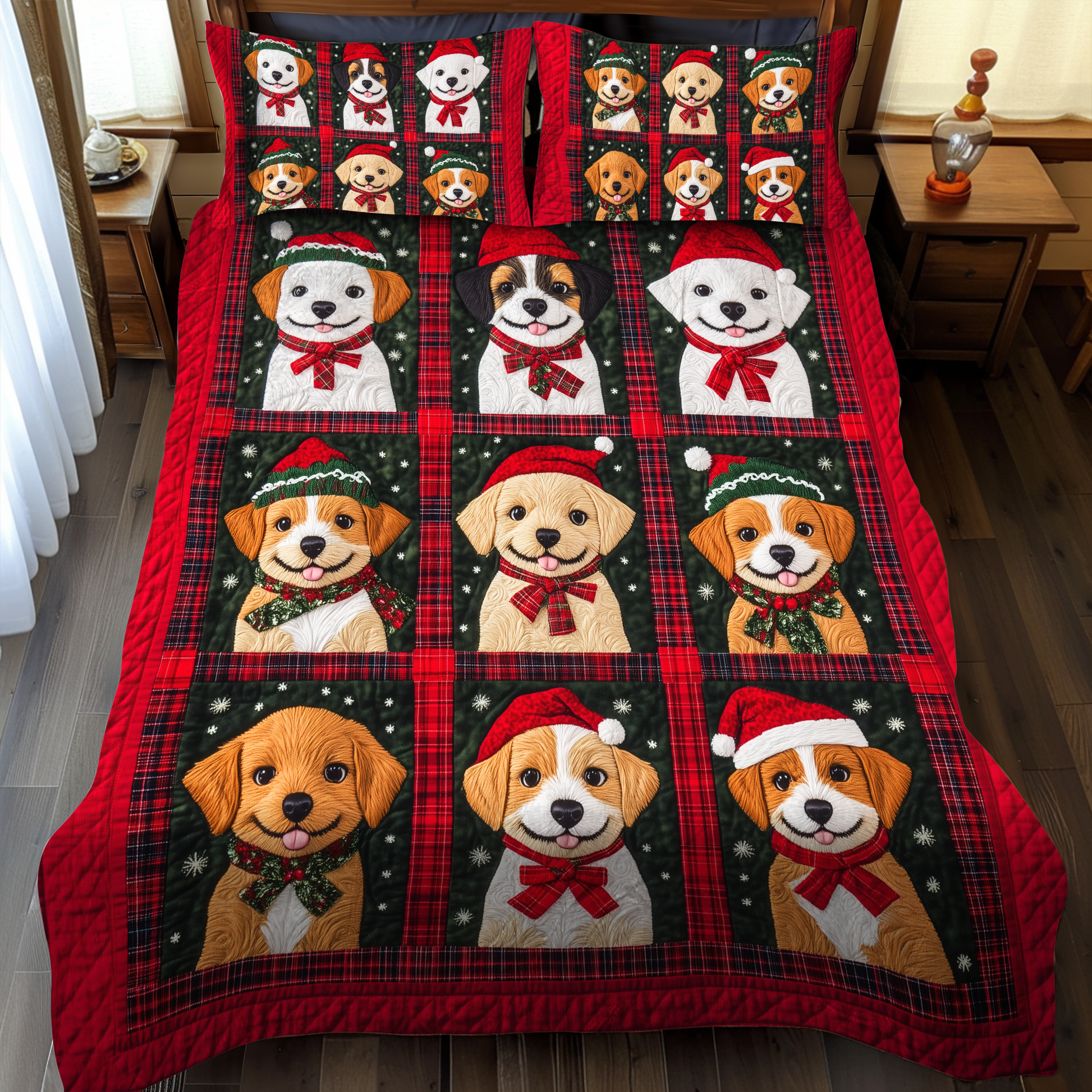 Snowy Puppy Cuddles 3-Piece Quilted Bedding Set NCU0VL630