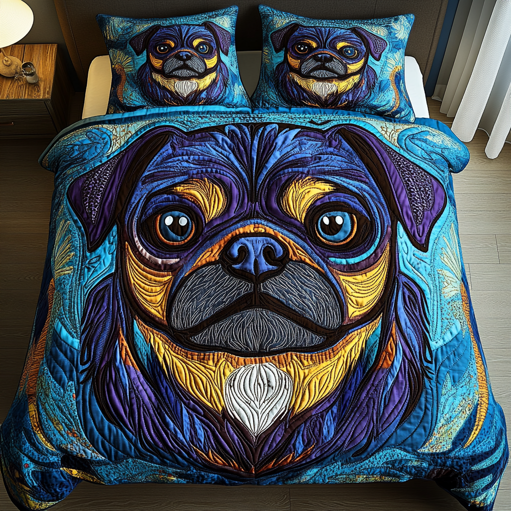 Snuggly Pug Smiles 3-Piece Quilted Bedding Set NCU0DK2112