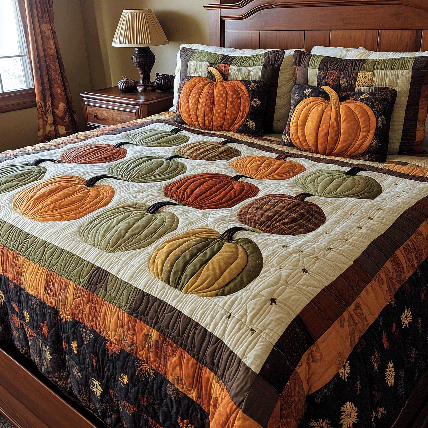 Spooky Pumpkin 3-Piece Quilted Bedding Set NCU0TH1967