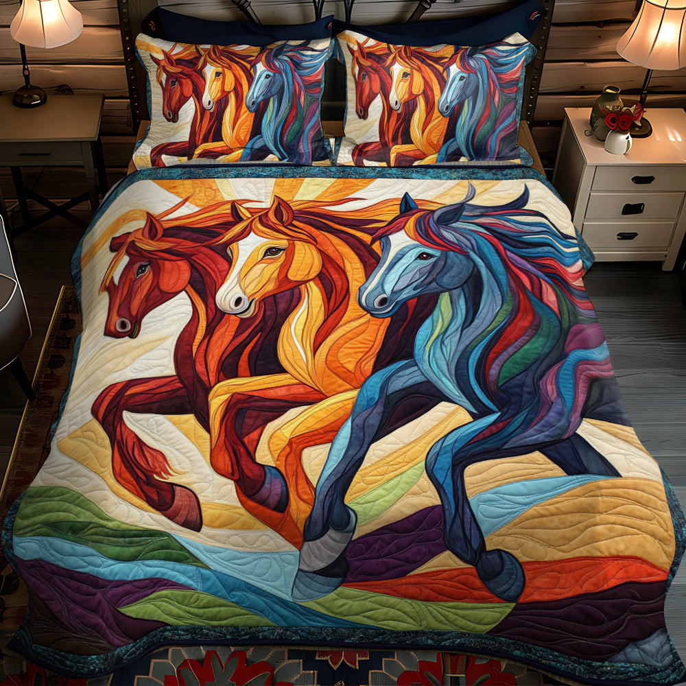 Stunning Horse Equestrian 3-Piece Quilted Bedding Set NCU0PD585