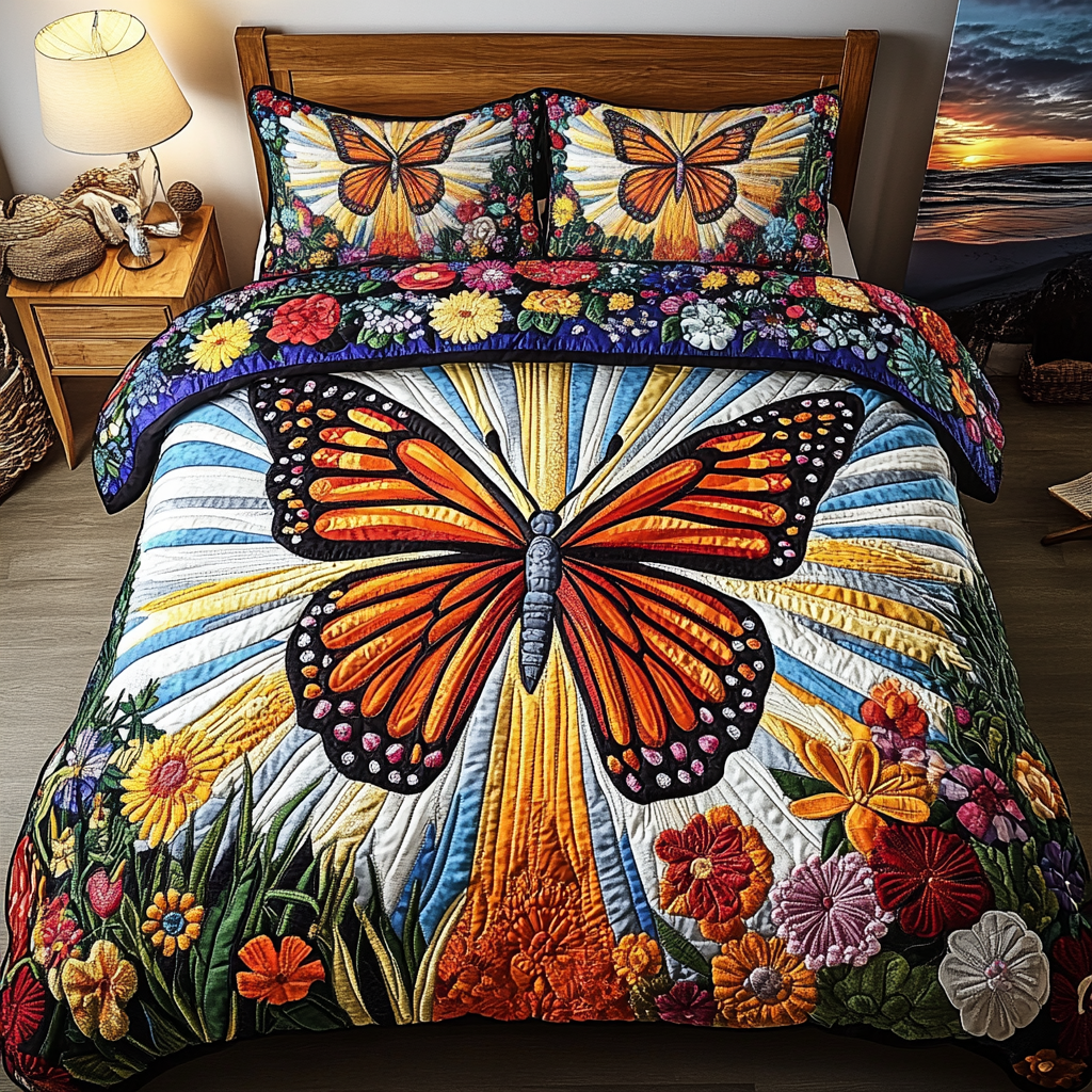 Sunlit Butterfly 3-Piece Quilted Bedding Set NCU0VL1050
