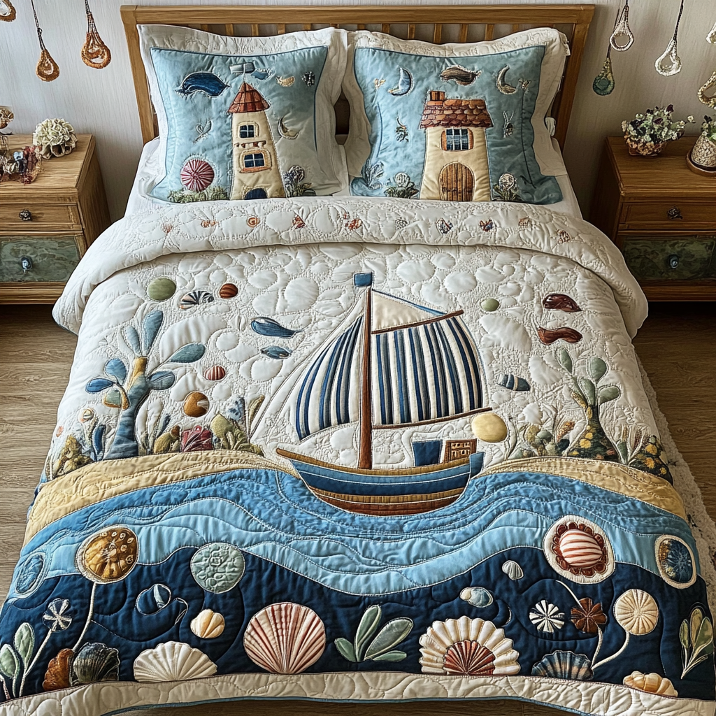 Sunset Over the Sea 3-Piece Quilted Bedding Set NCU0VL1366