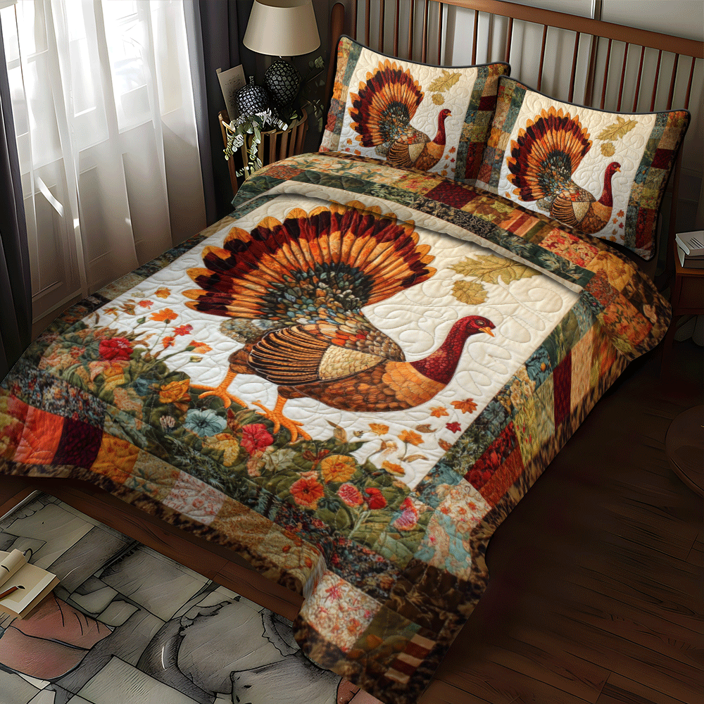 Thanksgiving Feast Turkey 3-Piece Quilted Bedding Set NCU0PD701