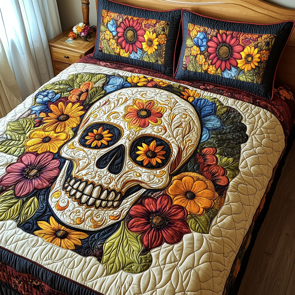Vibrant Skull 3-Piece Quilted Bedding Set NCU0TL1913