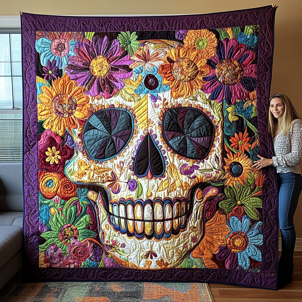 Vivid Floral Skull Quilted Blanket NCU0TL1908