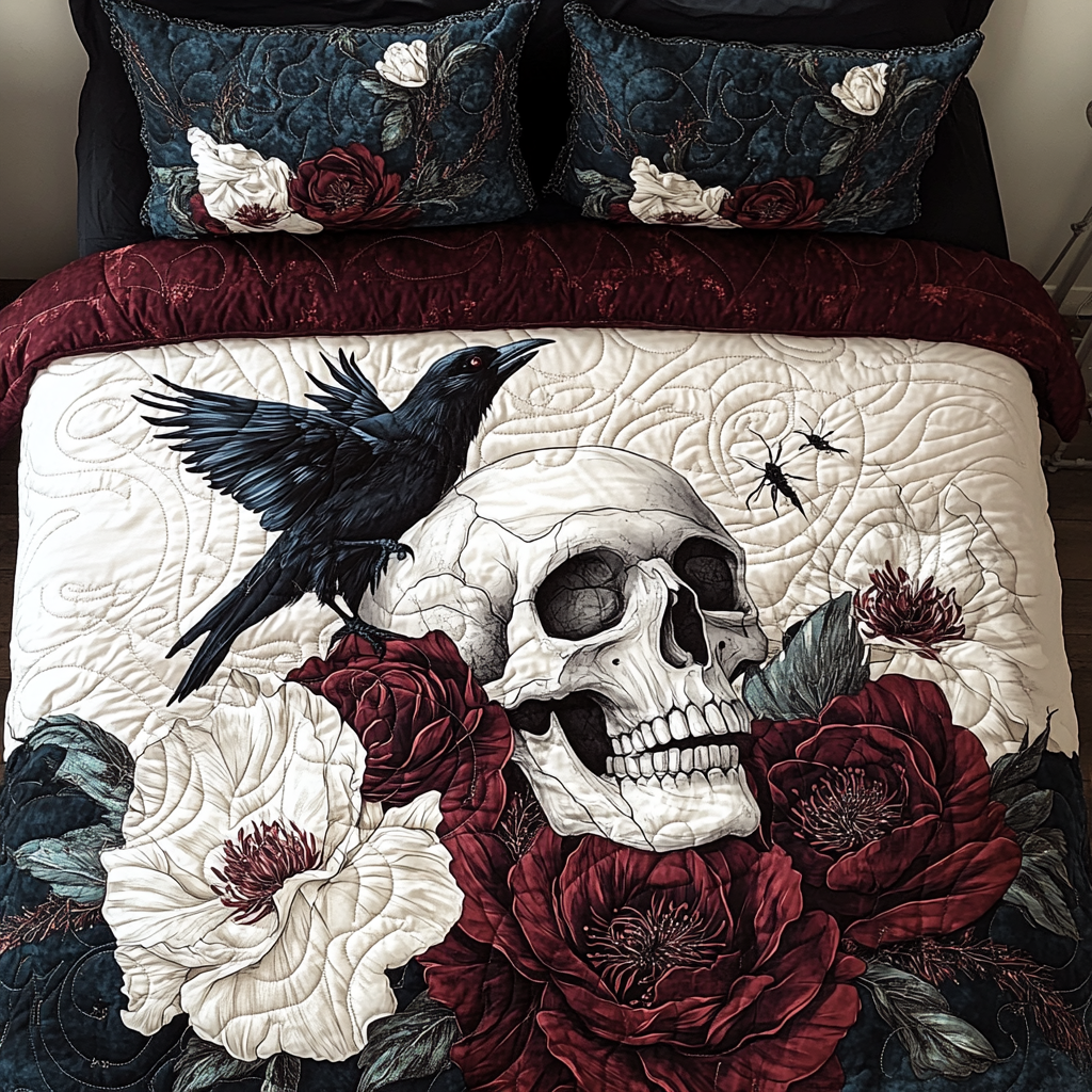Whimsical Skull 3-Piece Quilted Bedding Set NCU0TL2049