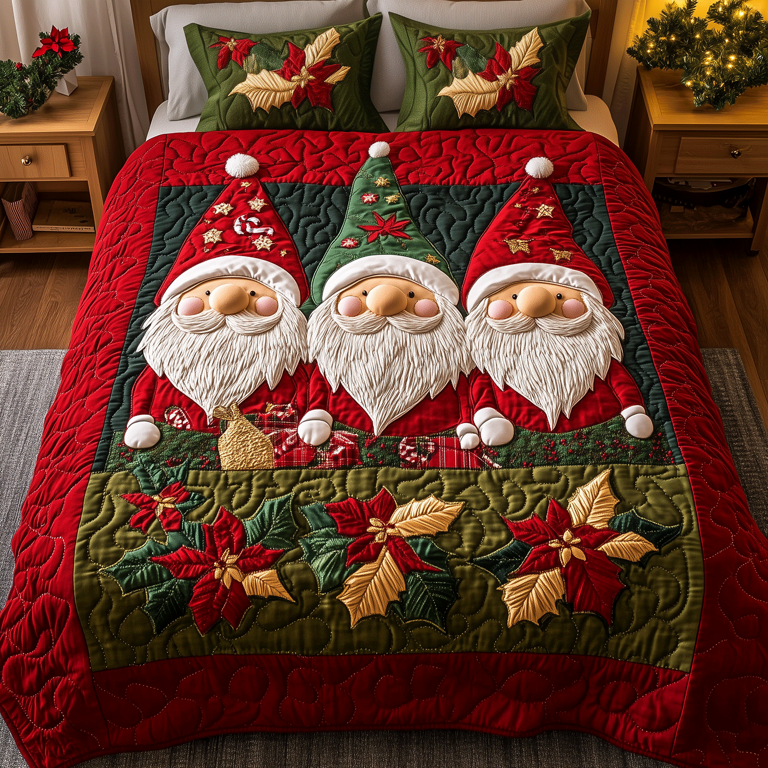 Winter Gnome Wonderland 3-Piece Quilted Bedding Set NCU0TH2126