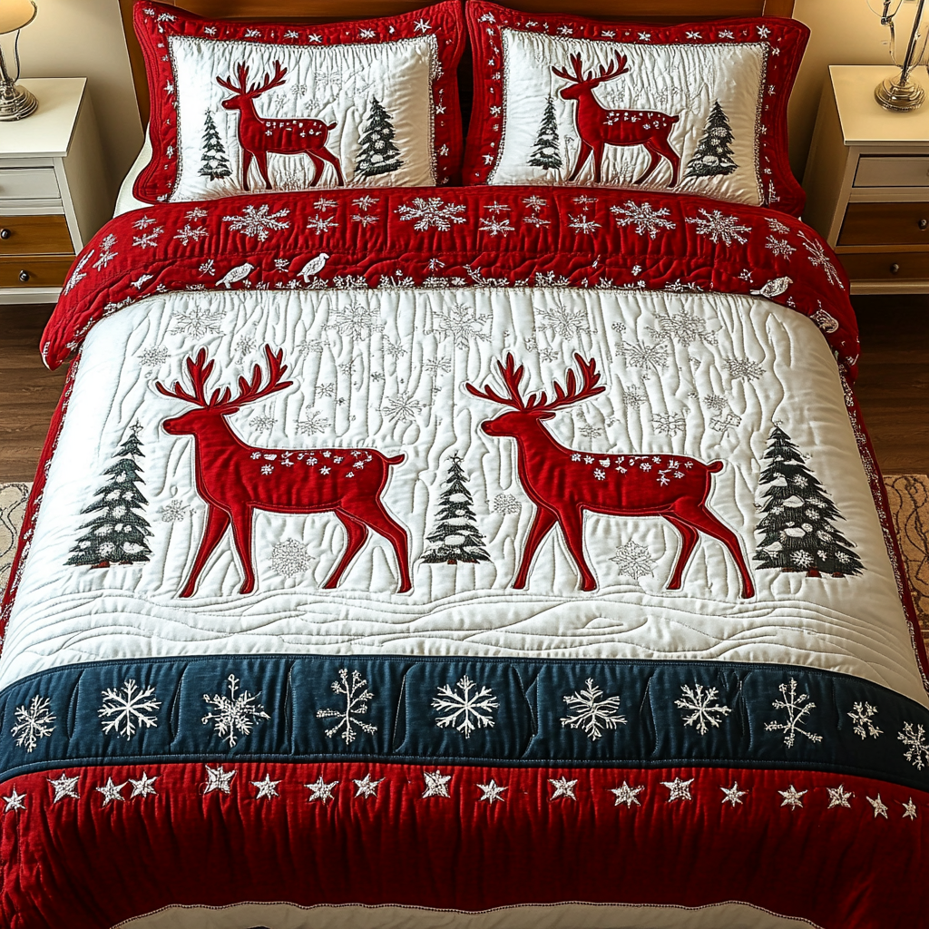 Winter Prancing Delight 3-Piece Quilted Bedding Set NCU0DK2226