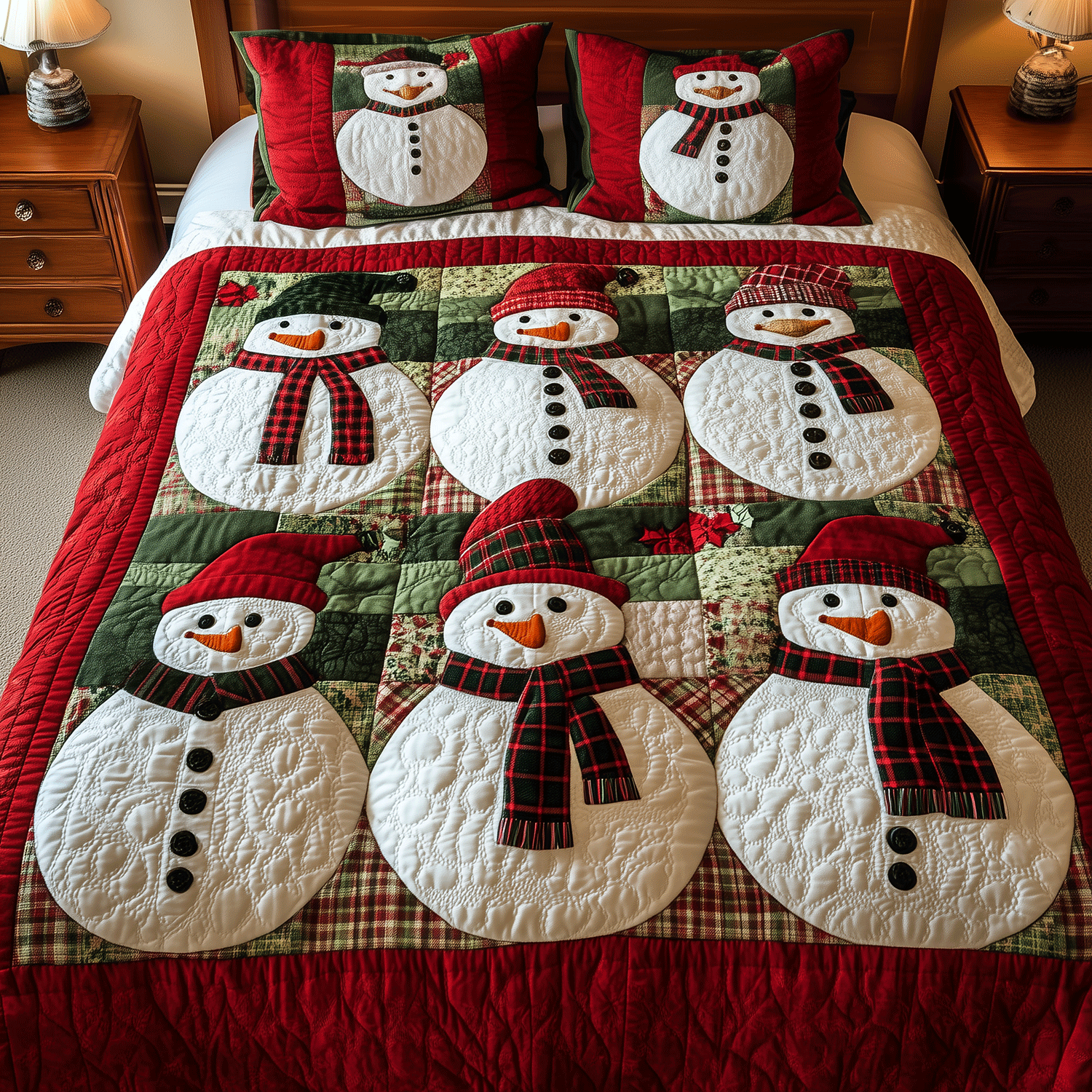 Winter Snowman Joy 3-Piece Quilted Bedding Set NCU0TH2131