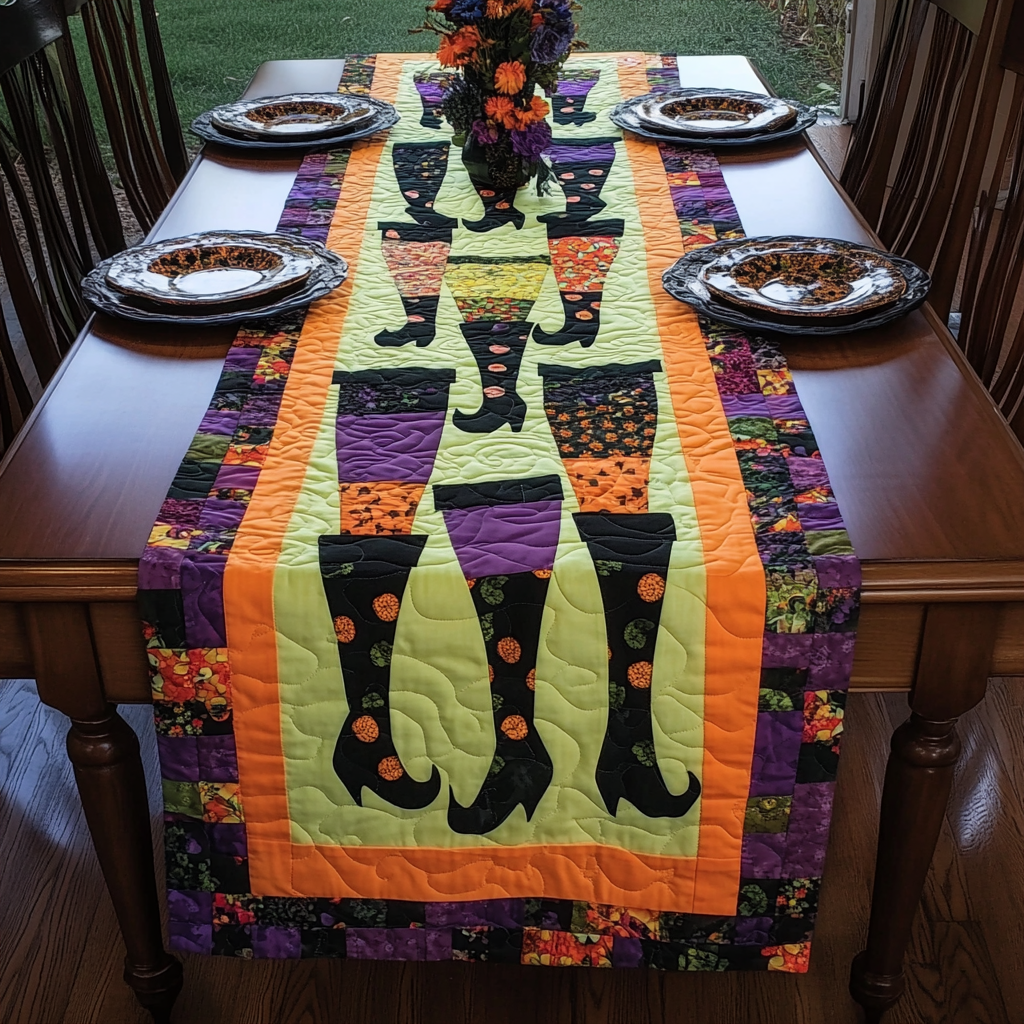 Witches Boots Halloween Quilted Table Runner NCU0PD688